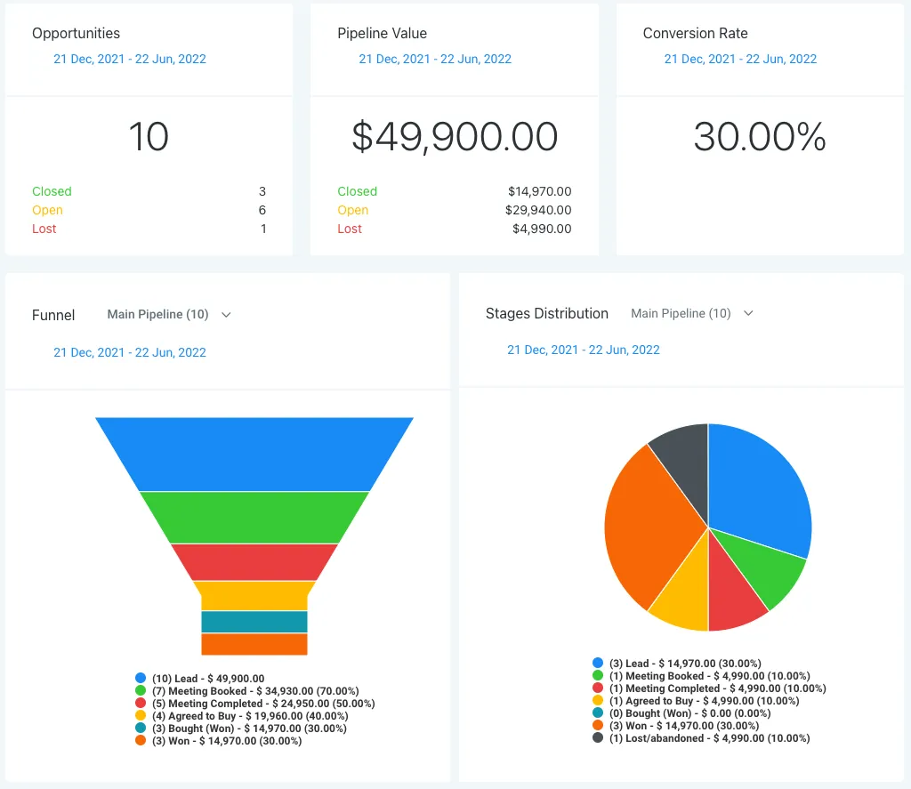 Actively track every opportunity throughout your sales pipeline so you never miss a beat!